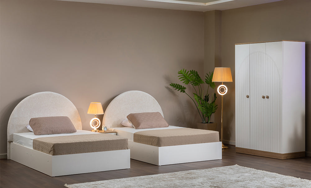 السرير: عرض 105 سم، إرتفاع 30 سم، إرتفاع ظهر السرير 85 سم، عمق 205 سم